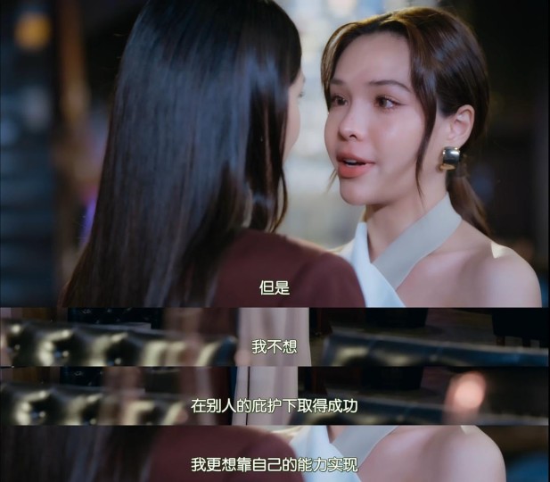 就在Ai以为一切雨过天青又可以用自己的能力去“庇护”Mae时,头脑清醒的Mae说出了肺腑之言——“我更想靠自己的能力实现(成就)”,在未实现个人理想之前她们只能分手。至此,Ai终于品尝到始终忽略Mae的事业心给自己带来的苦头。 有人说Mae太固执太轴,明明和Ai在一起既能得到最好的爱,也能享受Ai在商界的地位与人脉为她提供的便利。这些人和Ai总一样,在EP8酒吧分手之前始终未能明白Mae真正想要的是什么,习惯将她视作需要被呵护照顾的“雏鸟”和“幼兽”。然而,这只雏鸟有翱翔天际的鸿鹄之志,这头幼兽有成为百兽之王的勃勃野心,有谁真正把她的抱负放在心上? 还有人说Mae分手的理由太牵强,明明不分手也可以搞事业,这样甚至害到副CP无法修成正果。笔者只想说,Ai的追求、副CP的追求和Mae的追求原先便存在着本质差异,活在她人(哪怕是爱人)庇护下对Mae来说就是一种不自由。哪怕Ai和她公开恋人关系后再任其自由发展,Mae也很难不被外界定性为“Ai总的恋人”、“靠Ai总获得成功的商界幸运儿”。独自成长是必经阵痛的,Mae必须和Ai彻底切割,才能追赶上Ai比她多成长的那些年。