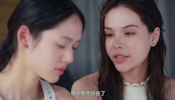 Sonya擅长使用微表情、小幅度动作来表现角色不易被察觉的心思,如前述提及她解释“窃听行为”时的停顿再低头。这里还有一个更好的例子,Mae在露台躺椅坐着安慰Ai时,说到一句“等你感觉好些了,我们再分开”。此时Mae的内心是害怕说出这种话会二度伤害Ai,但理智又告诉她不应该将心疼Ai的处境与她俩因为理念不同而分手这两件事混为一谈。所以Sonya的肢体表现是低头、短暂移开视线,又小心翼翼抬眸观察Ai的反应。 💡3.角色理解与塑造赏析 优秀演员对角色的理解与塑造,是有着自己独特的思考与设计的。剧本并不会事无巨细地告诉演员应该如何演绎,甚至同样的场景使用不同的方式演绎,效果可能会大相径庭。导演固然有指点演法的责任,但像LMSY这种悟性极高又默契十足的演员组合,对手戏的流畅程度能让观众忘记她们现实中是什么样的性格,Lookmhee就该是Aiwarin,Sonya就该是Maevika,毫无违和感。